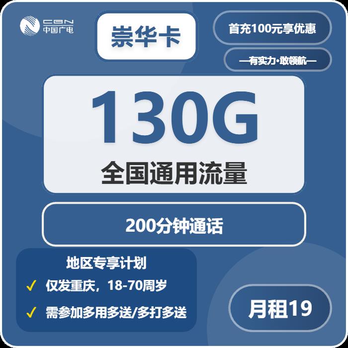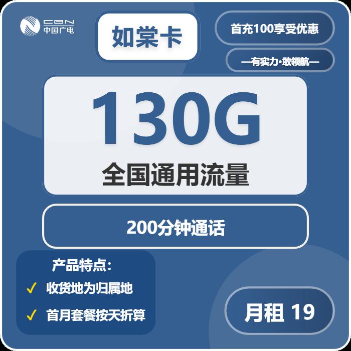 19元包130G通用+200分钟