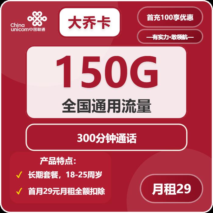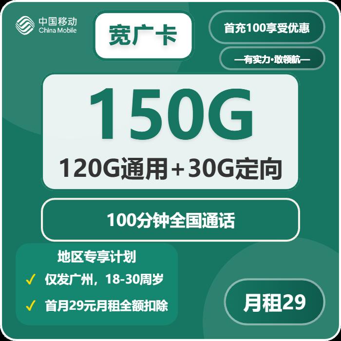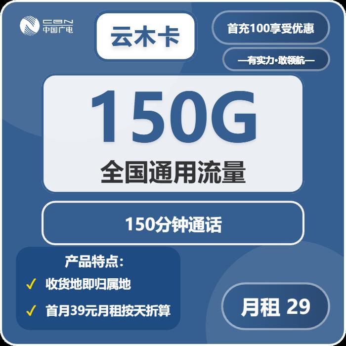 29元包150G通用+150分钟通话