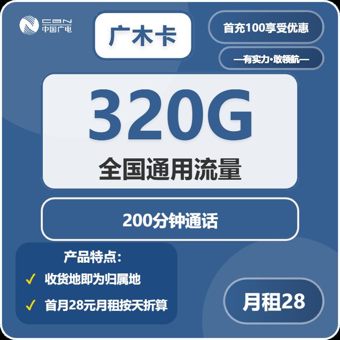 28元包320G通用+200分钟通话