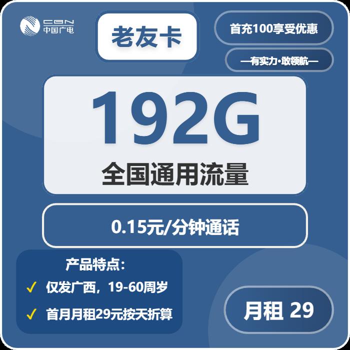 29元包192G通用+通话0.15元/分钟