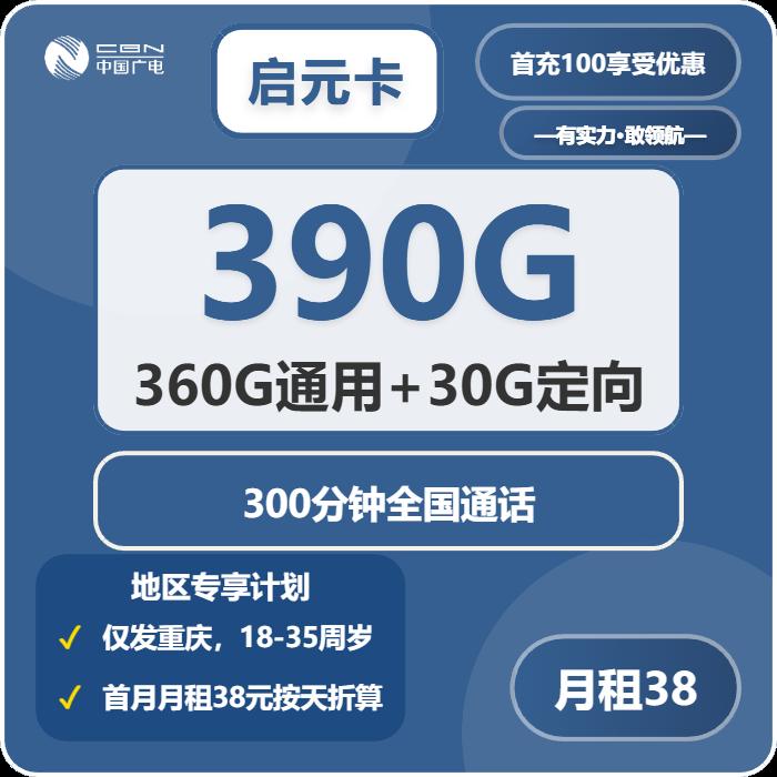 38元包360G通用+30G定向+300分钟通话