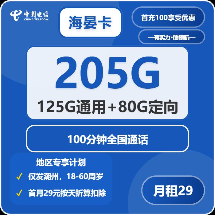 29元包125G通用+30G定向+100分钟通话