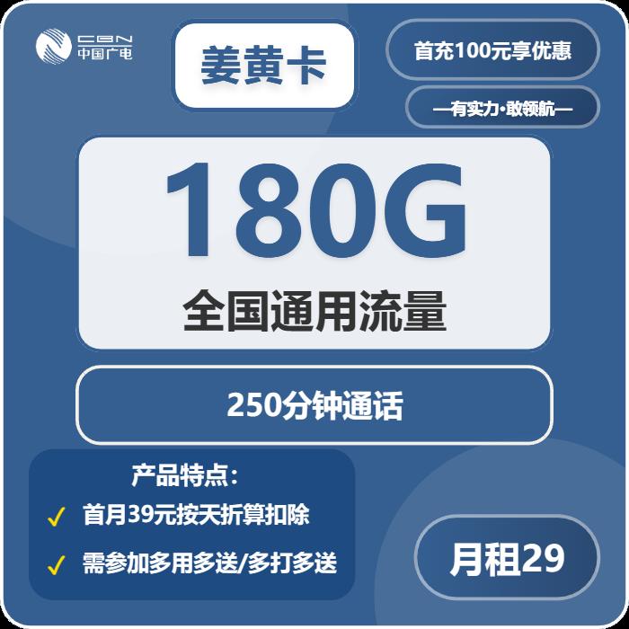 29元包180G通用+250分钟通话