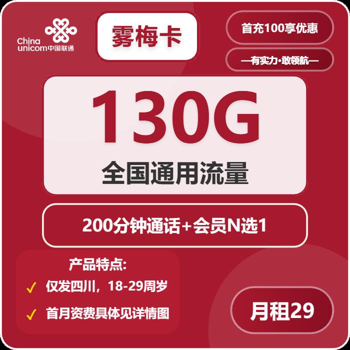 29元包130G通用+200分钟通话