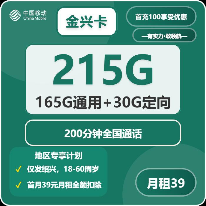 39元包185G通用+30G定向+300分钟通话