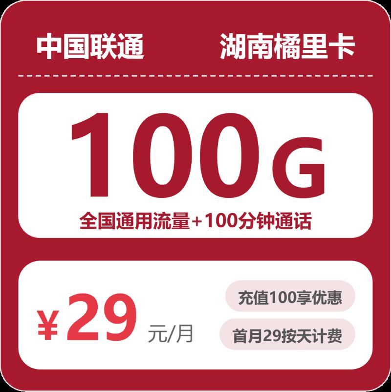 29元包100G通用+100分钟通话